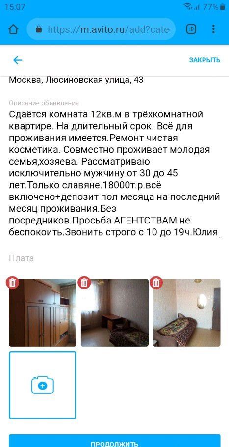 Без посредников, сдаётся комната девушке студентке Плехановского института, окна во двор и на Плехановскую академию. Писать смс на номер телефона, перезвоню... подробнее