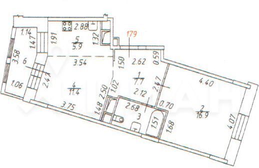 В квартире 2 санузла на две комнаты, просторная кухня.