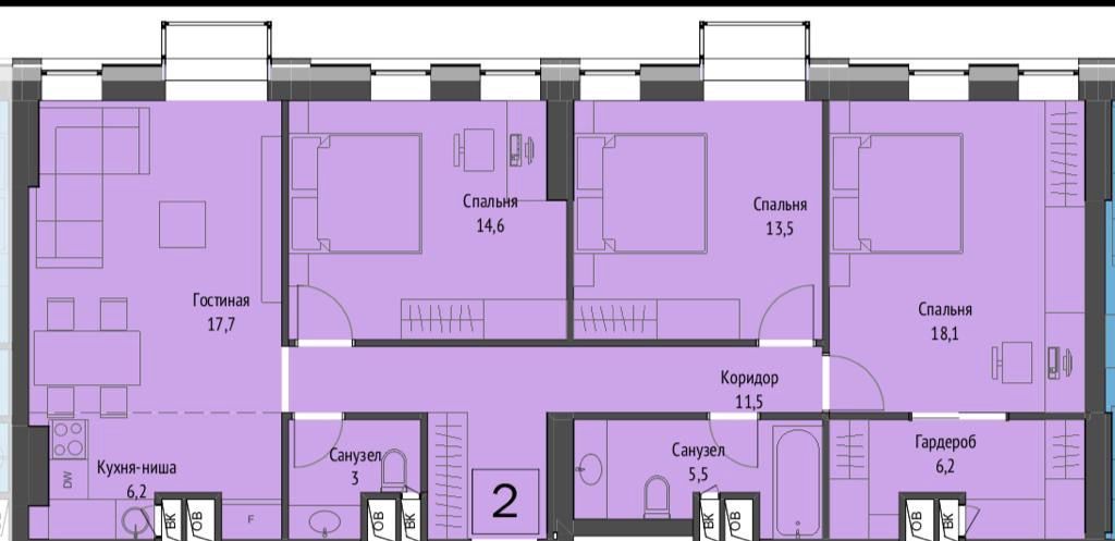 ЖК Vander Park на Рублёвском шоссе дом.101 секция 3. 2-х комнатная квартира 68,4 м2 подробнее
